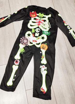 Дякую, що зайшли у мій магазин До вашої уваги костюм скелетика на 2-3 рочки хелловін Halloween Додаю фото бірки Застібається на ліпучках Заміри: Від бірки до низу 72 Від плеча до плеча 25 Від підмишки до підмишки 31 Шаговий шов 32 Дефектів немає Якщо потрібно, можу зробити додаткові фото/заміри Дивіться інші мої об'яви, обираючи кілька речей ви економите на доставці Вдалих вам покупок