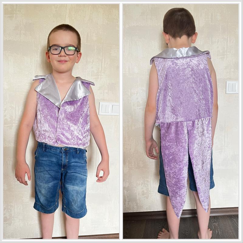 Код 7025. Ребенку на фото около 9 лет. Длина спереди 36 по спинке 88 на полхват груди 47 на пол обхват талии 41. Состояние отличное. Без нюансов.