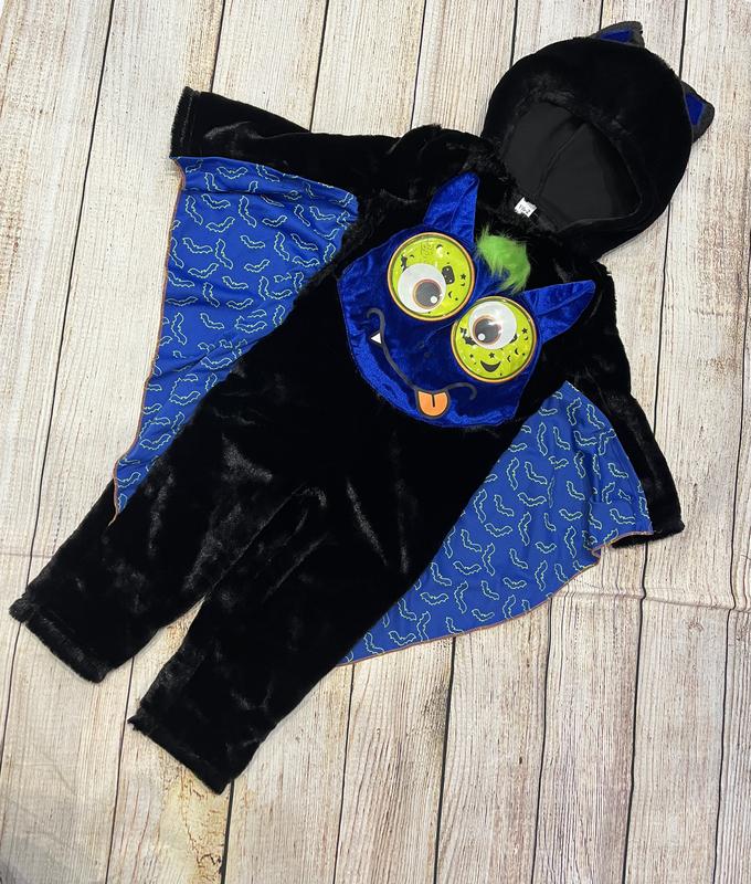 Дитячий костюм кажана в чудовому стані. Спереду на липучках. Рекомендовано на 1,5-2 роки, 86-92 см, але дивіться по замірам. Склад: поліестер 100% Довжина від плеча 72 см Ширина 30 см Переходьте та підписуйтесь на сторінку, ще є дитячі речі та взуття за доступними цінами🧸 Підписникам знижка😉