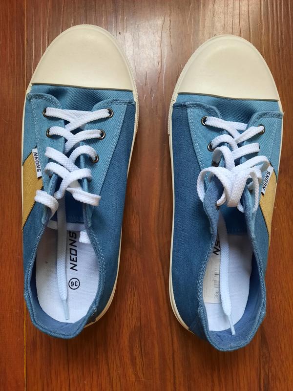 Кеды унисекс NeonS Размер 36, стелька 23 см Кеды новые. Подошва и носок - пвх (прорезиненная, мягкая) верх коттон, 2 пары шнурков (белые, синие).