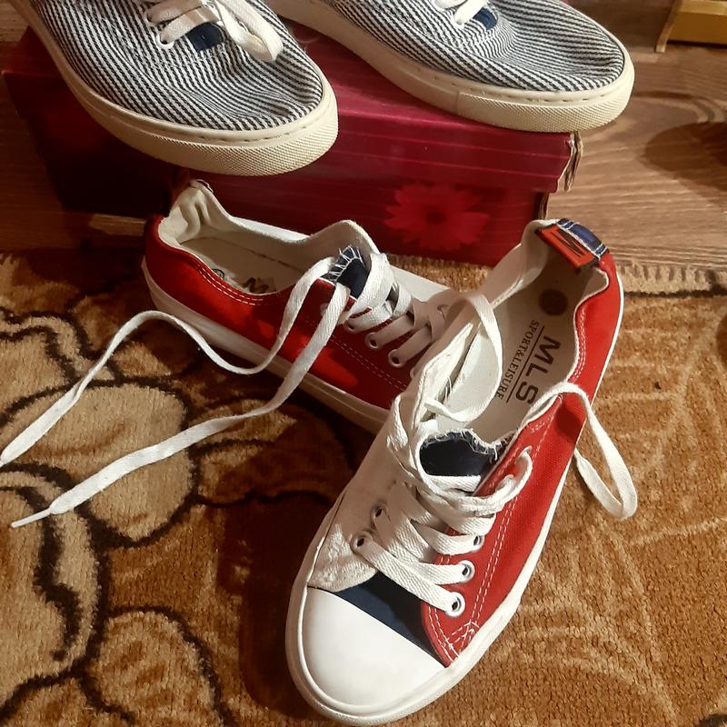 Кеды в идеальном состоянии бело - 36 размер стелтка 23см, в полоску 37 размер стелька 26см. Ціна 110грн.