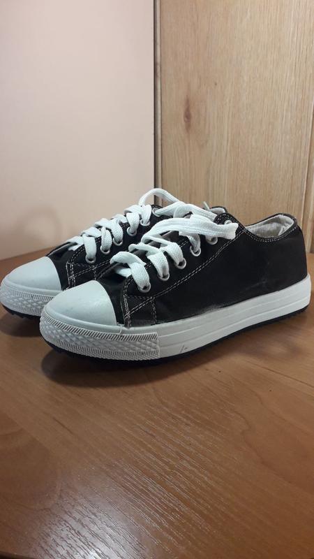 Кеди. Последняя пара из витрины имеет немного потертости со стороны - это видно на фото, темной большой скидки. Новые.Черные.37 размер длина стельки около 22.5см.Маломерит, узкая ножка. Цена 115 грн. Для повседневной носки.