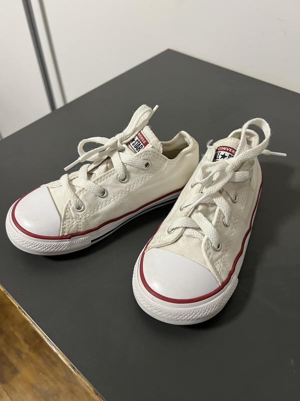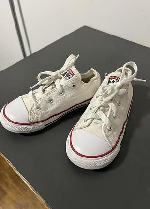 Детские кеды Converse Размер - 26 Длина стельки - 17,5см Подойдут на ногу 16.5см Есть нюанс - голубое пятно на одном тапочке (показала на фото)
