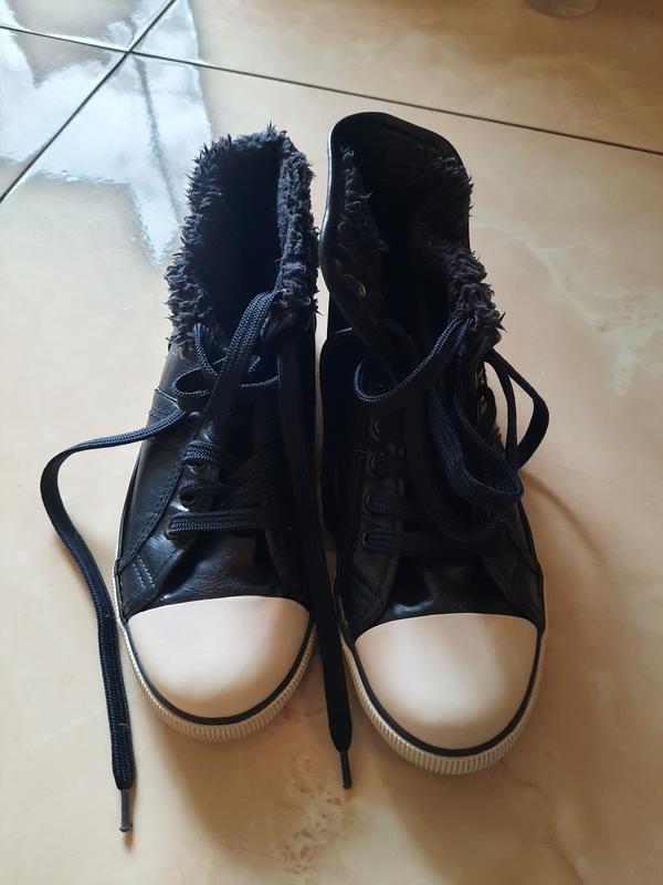 Кеды практически новые...но после стирки чуть местами отошла подошва по верху..если подклеить.. будут отлично носиться👍👌 сверху ..на фото показала...чуть лопнула кожа...но не будет видно абсолютно...если кеды носить подкочеными..на кнопках и фото 10..тоже чуть слезла кожа..в глаза не бросается. носки..пятки..подошва все целое