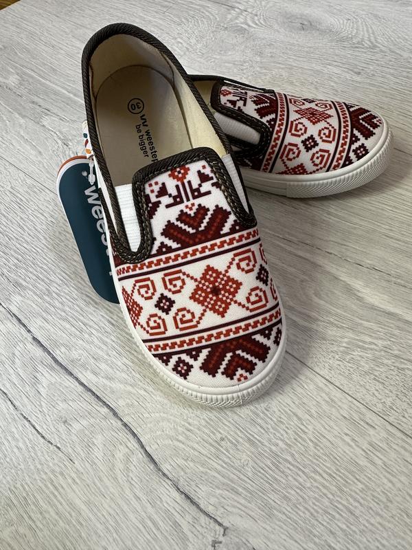 Новые текстильные кеды от Weestep унисекс с орнаментом вышиванки бело - красного цвета. Материал верха - текстиль, стелька правильная кожаная, что предотвращает запады стопы и не позволяет формировать неправильную походку у ребенка. Резинки по бокам позволяют не сковывать активное движение ребенка, подойдут на любой объем. Подошва мягкая, пятка уплотнена, хорошо зафиксирована. Не будут парить ножку, любые пятна очень просто вывести. Рекомендую как для мальчиков, так и для девочек. В наличии размеры 29 - 18,5 стелька Целесообразно брать с минимальным запасом - до 0.5 см. Фото стельки присылаю в личные. Отпрашиваю любым оператором почты.