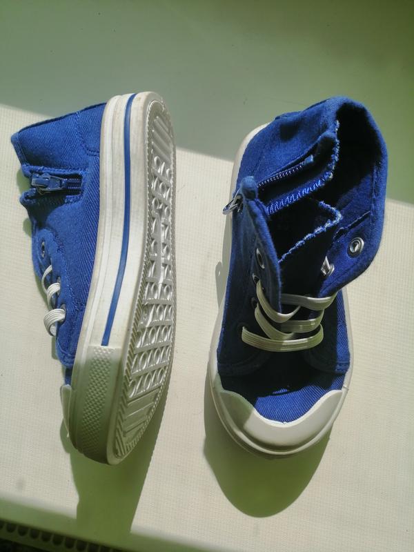 Новые кеды. Унисекс, но мы принимали для мальчика. Насыщенно синий цвет. Сбоку на молнии. Размер 23.