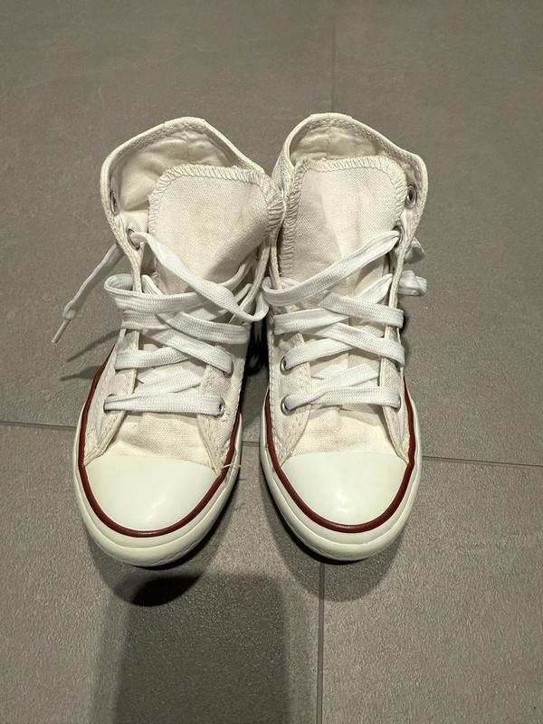 Стильні білі кеди Converse All Star (оригінал), розмір EUR 31 (19 см). Класика, яка завжди в тренді — універсальні та легкі, підходять під будь-який образ. Виготовлені з якісного текстилю, з фірмовою гумовою підошвою та легендарним логотипом. Ідеальний вибір для тих, хто любить комфорт і стиль у кожному кроці!