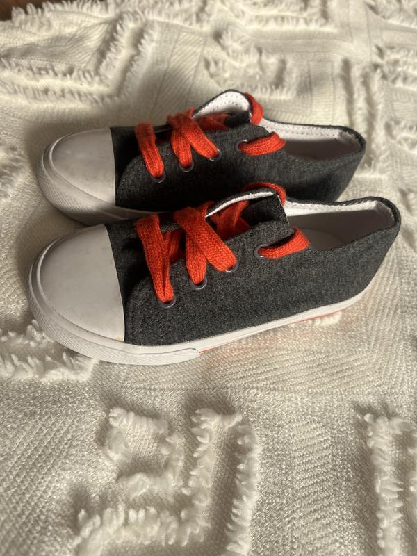 Класні дитячі кеди сірого кольору з яскравими шнурівками😍 Довжина устілки 16 см Якщо виникли додаткові запитання - пишіть, або ж оформляйте замовлення і я якнайшвидше вам його відправлю 😉