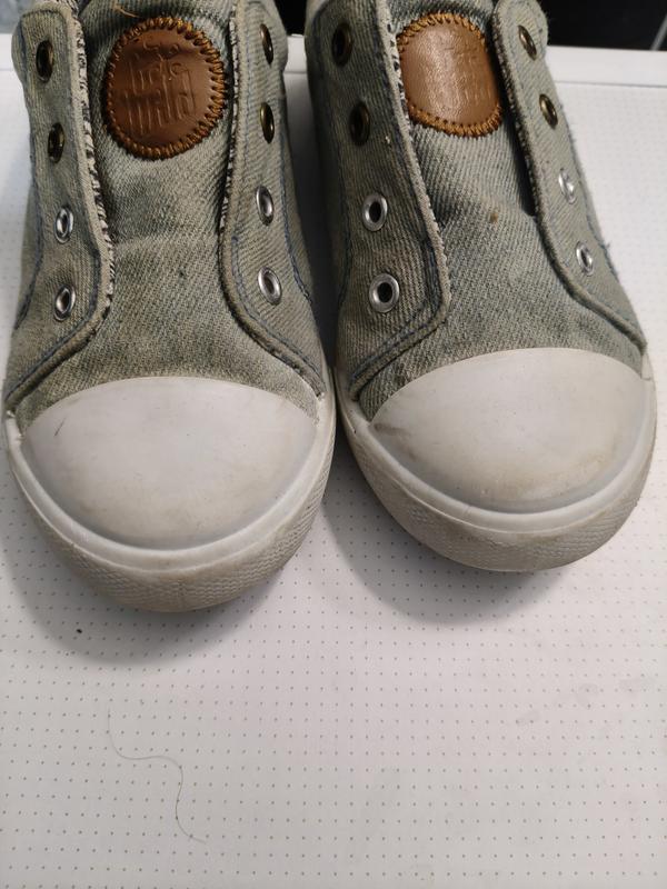 Внутри - 19 см Это детские кеды Vertbaudet. Обувь изготовлена из брезента или парусины с резиновым усилением на носке. Характеристики Бренд: Vertbaudet Тип: Кежуал кеды или слипоны (без шнурков, вероятно, на резинке) Материал: Верх - ткань (парусина/деним), подошва - эластомер/резина Размер: Указано европейский размер 30 Особенности: Усиленный носок для защиты от ударов, мягкая и легкая конструкция для свободы движений