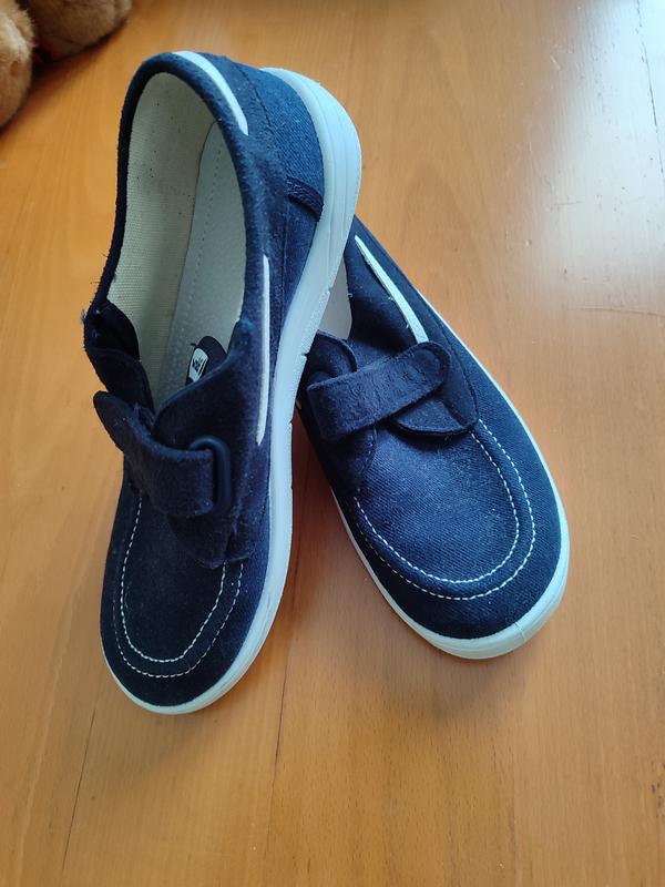 Новые, удобные и стильные кеды( макасины). Ортопедическая кожаная стелька. Твердый задник, который хорошо фиксирует ножку. Защелка на липучку. Длина стельки 23см. но идеально на ножку 22; 22,5 см к желаемому нам не подошел размер(