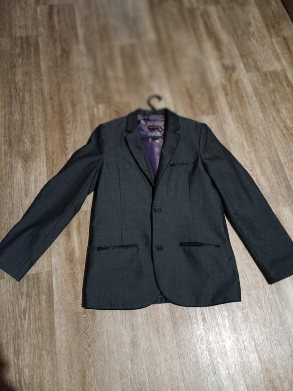 шикарная двойка пиджака и жилет (унисекс) на возраст 15 лет или стройную барышню. В составе шерсть, красивого серо стального цвета, на фиолетовом подкладе, возможно тушить как паром так и по отдельности. Замеры: длина пиджака 70 см, рукав 60 см, пог 45 см пот 45 см, жилет: длина 58 см, пог 42 см, пот 42 см (содержится хлястик на спине, регулирующий ширину). Высокое качество, красивое лекало.