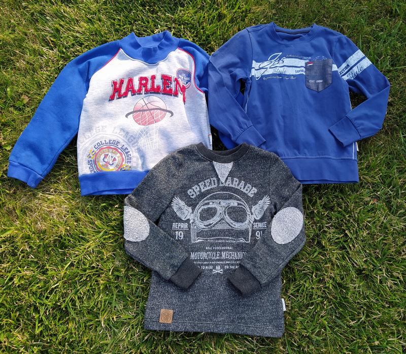 Всё в отличном состоянии!! Фото сделано при дневном свете, без фотошопа. Свитшот один утепленный, два без начёса. Всё качественное.