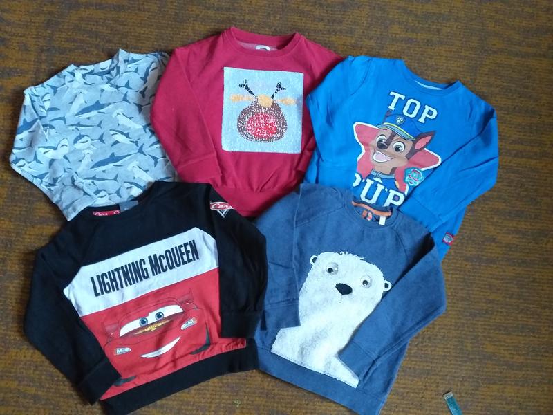 Кофты в идеальном состоянии без дефектов, пятен. 1. Кофта серая с акулами 3/4р. Длина 38 Ширина 31 Рукав 33/от шеи 41 Плечи 28 5. Кофта красная новогодняя 5р. Длина 41 Ширина 36 Рукав 31/ от шеи 45 Цена указана за единицу.