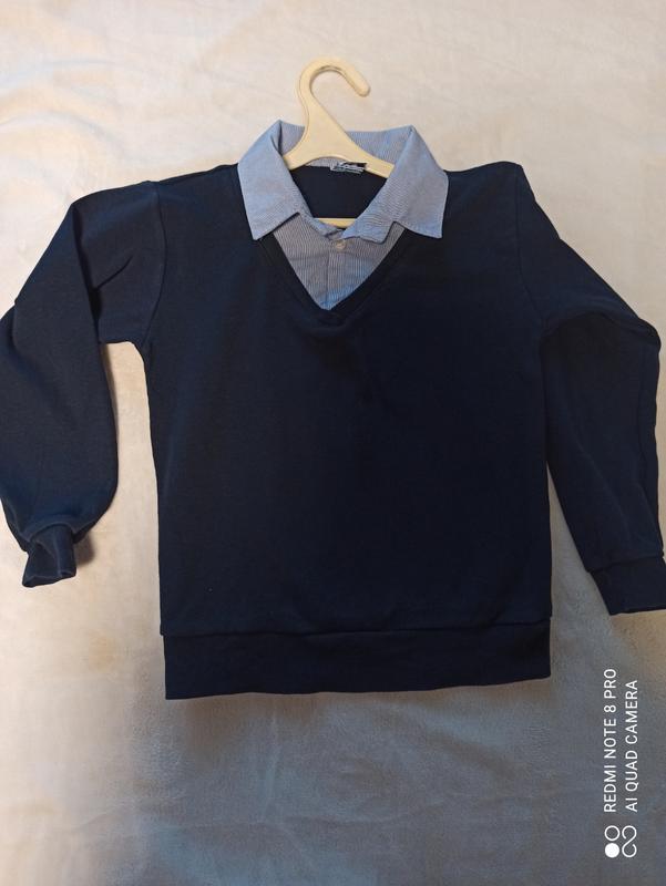 В идеальном состоянии кофточка на мальчика обманка, горловина сделана под рубашку, примерно на 9-10 лет, замеры на фото.