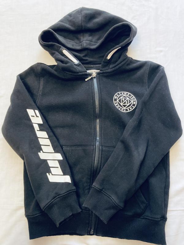 Олімпійка насиченого чорного кольору. По бірці на 10 років , зріст 140 см . Довжина рукава - 53, пог - 45, довжина - 51 см . Легкий начіс.
