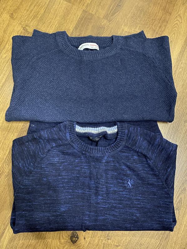 Два светра котонові. Next размір 6/116 заміри довжина 46, рукав від шиї 48 см. Minoti довжина 43.5 см рукав від шиї 48 см. За два 200