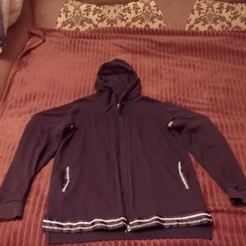 Чорна кофта. Трикотаж. Довжина виробу 74 см. , довжина рукава від капішону 75 см., рукав відстігається, ширина виробу 50 см.