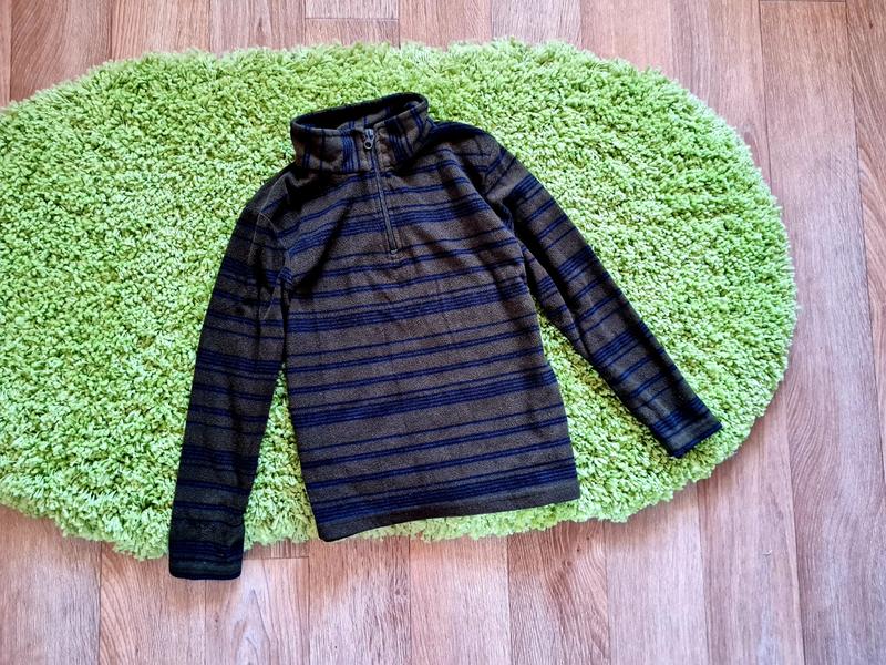 Фирменная флиска в отличном состоянии! Очень мягкая удобная, тёплая, спереди на груди на змейке, удобно одевать. Размер 7-8 лет на рост 122 см. Длина 49 Ширина под рукавами 39 Рукав от плеча 46 Плечи 34