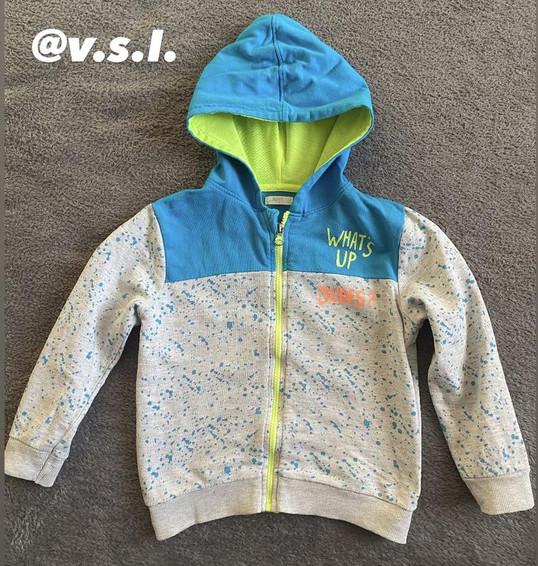 Фото на тілі нема Рукави довгі Є капішон Фасон вільний по фігурі Застібається на блискавку Кишень немає Тягнеться Щільність середня Підійде на 4-6 років Оріентуйтесь по замірам З нюансів-є незначні плями і мікрокатишки на фото вказано у ціні враховано Довжина 42 см) Плечі 32 см) Рукав 38 см) Пот 37 см) Знизу 32 см)