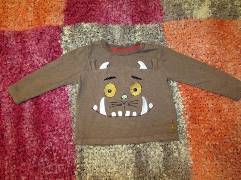 Реглан Груффало 9-12 міс. по бірці.Обємні ріжки й вушка.На плечику 2 кнопки. Заміри: довжина 29.5 см.ширина 26см.,плечі 22 см. Рукав від плеча 26,5 см.
