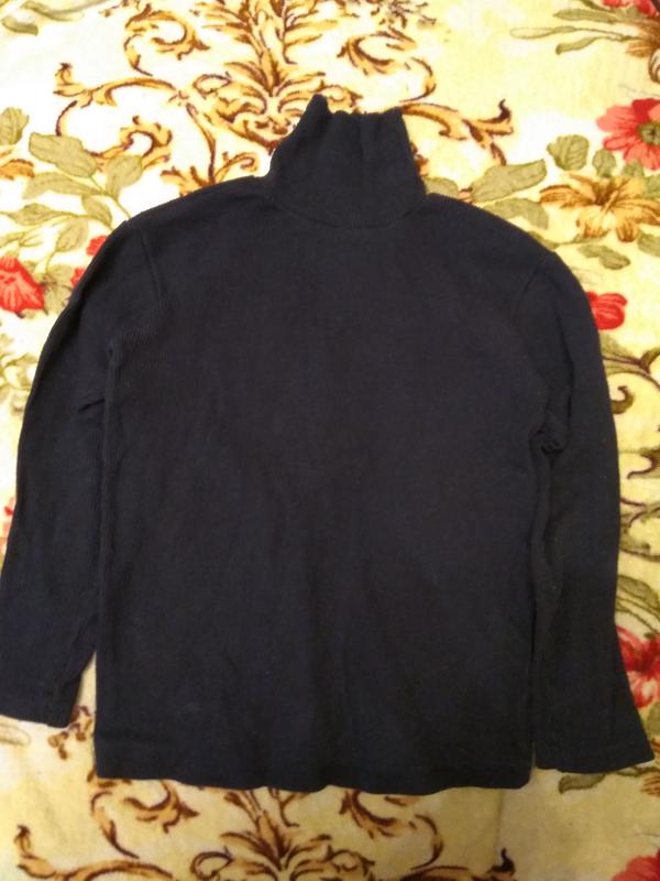 Гольф темно синего цвета.Замеры: длина 45 см,ширина 34 см, рукав от плеча 38 см.