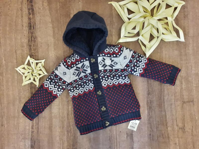 Очень теплая кофта с меховым начесом внутри. Верх 100 % акрил, внутри 100 % полиестер. Размер 80-86. Будет дольше. Большемерит.