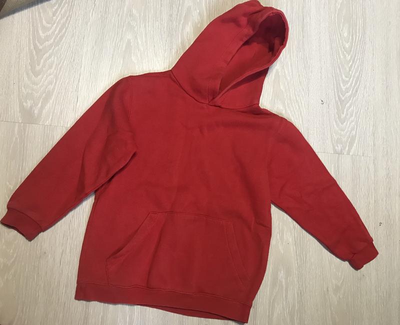 Толстовка на мальчика 9-11 лет , красного цвета, с карманами. На рост 134-146 см.