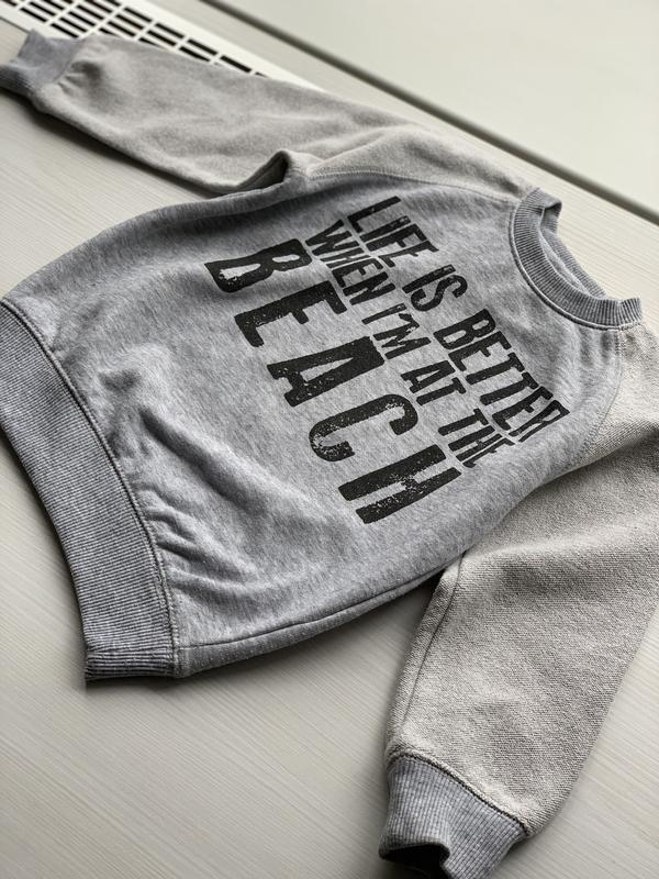 Світшот сірий з написами. По бірці розмір 4 роки{104 см}, маломірить до 2/3 років. Рукав регланом 41 см, довжина 40 см.