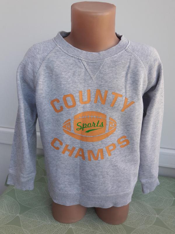 Толстовка для мальчика светло серого цвета впереди аппликация. Длина изделия 42 см, полуобхват груди 38 см, длина рукава реглан 47 см от горловины.