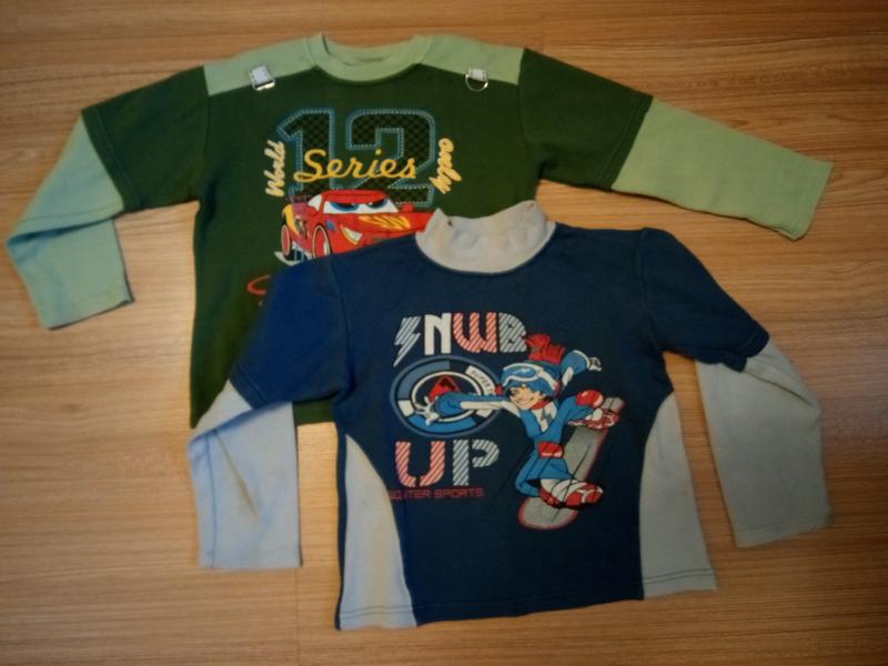 Отличные кофты для садика на 3-4 года. Синяя с начесом. На зеленой внизу распорота строчка