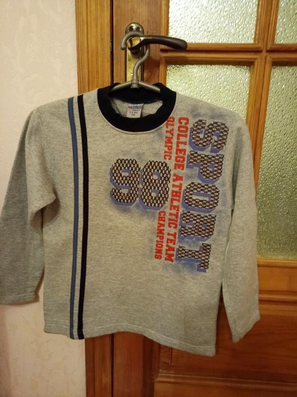 Кофта сірого кольору, з малюнком. Довжина рукава – 48, ширина плечей – 40 см, довжина виробу – 55 див.