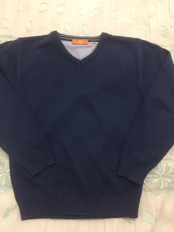 Свитер в идеальном состоянии. Отличный вариант для школы. Цвет синий. Состав: 50% котон, 50% акрила. Длина 51 см, ширина 41 см, рукав от плеча 49 см, плечо 12 см