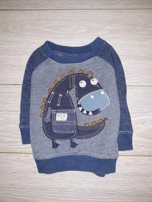 Фирменный свитшот мальчику на 6-9 мес из коллекции 2014г. Внутри начёса нет. Состав 100% хлопок. Состояние очень хорошее Замеры: длина по спинке 32,5 см, ширина между подмышками 29 см, рукав от воротника 26 см, по внутреннему шву 17,5 см