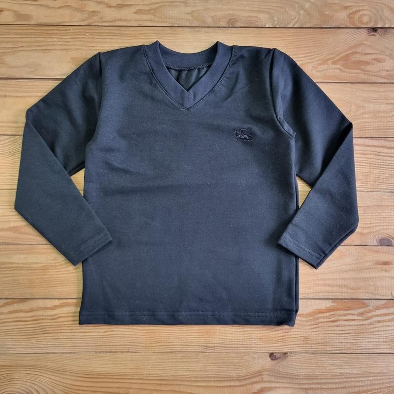 Классический джемпер для мальчика с открытой горловиной мысом. Украшен маленькой вышивкой-логотип. Отличный вариант для школу, хорошо смотрится с рубашкой. Цвет: Черный; Полотно: Футер без начеса (2-ниточный); Состав: 95% хлопок, 5% эластан; Оформление: Вышивка;