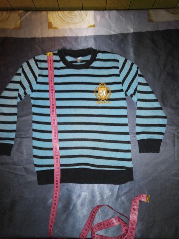 Реглан голубой в полоску для мальчика 5-7 лет, отличное качество и состояние. Длина 42, ПОГ 32, рукав 35