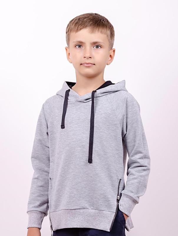 Свитшот для мальчиков. Стильный свитшот с капюшоном в актуальной цветовой гамме. Рукав длинный, реглан. Изделие дополнено тесьмой "молнией", что является изюминкой в кажущейся сдержанности изделия. размер 116-300 грн размер 122-310 грн размер 128-320 грн размер 134-330 грн размер 140-340 грн