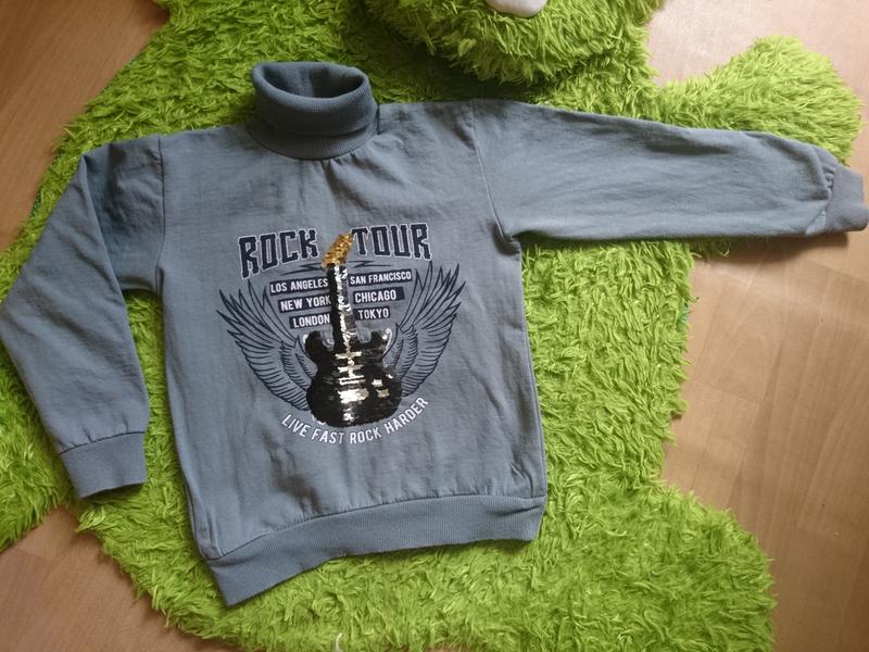 Тепленький светр з горлом на хлопчика з паєтками - перевертыши) Довжина від плеча-43 см,рукав-40см