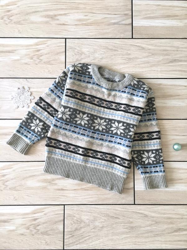 Зимний свитер с узором снежинки на 4-5 лет , длина 42, ширина 33, плечи 30, рукав 37