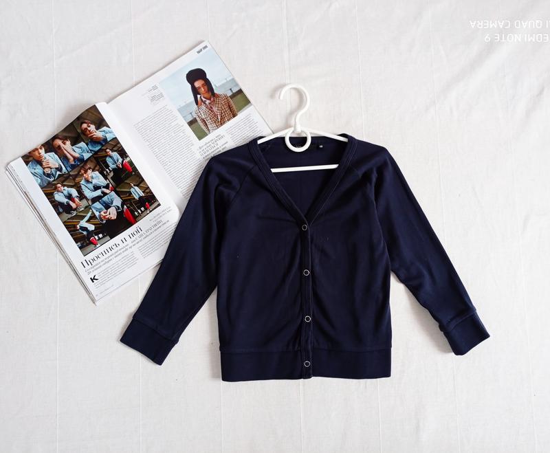 синій кардиган на кнопках фірми Lindex для хлопчика 4-5 років на зріст 110см, ПО грудей 35 см, довжина 44 см