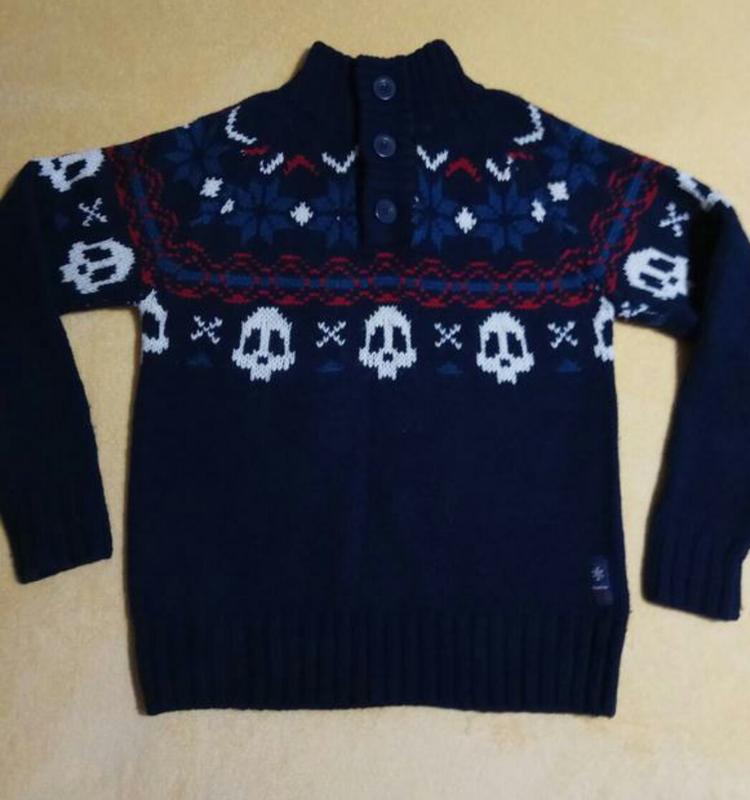 Свитер на 9-10 лет, Рост 140 см, темно-синего цвета,в актуальный принт, с высоким горлом на пуговицах.Приятного качества в хорошем состоянии. Замеры: рукав от горла 63 см.; об.грудей 41 см; по низу гумки 38 см.; довж.виробу 50 см. Перешлю после 100% оплаты на карточку. Отправлю Новой или Укр.почтой. За более детальной информацией убедитесь. Смотрите мое другое объявления.