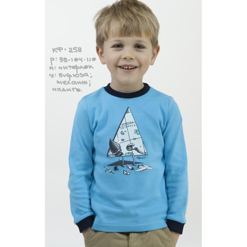 Кофта для мальчика Бермудский треугольник (интерлок) кф258 Робинзон Материал: интерлок (трикотажное полотно) 98: длина по центру спинки - 36,5см, ПОГ - 26,5 см; рукав -32 см