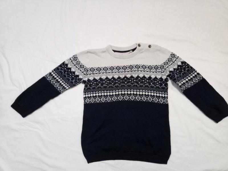 синий с жакардовым рисунком, на возраст 1,5-2года,котон замеры:плечи 26, 5, длина 40, 5,рукав 34,обьем 31