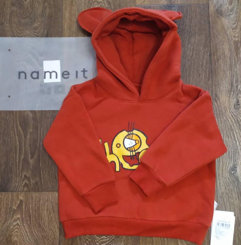 Оригинальный батник красного цвета. На капюшоне милые ушки. Трикотаж на флисе, теплый. Ткань мягкая, приятная к телу. Ребенок с удовольствием будет гулять в нем на улице. С биркой в оригинальной упаковке. Отправляю новой почтой, самовывоз. На все вопросы отвечу.