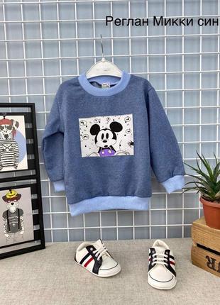 ✔ Супер стильный реглан! Турция ! Яркая, приятная расцветка, шикарное качество, трикотажные манжеты! Ткань- двунить! Рисунок- нашивка! Размеры: 98 - рук 28, сп 37 104 - рук 32, сп 40 110 - рук 34, сп 43 116 - рук 37, сп 46 ✔ Цена: 160 грн ** картинки - нашивки могут отличаться, но все с микки!