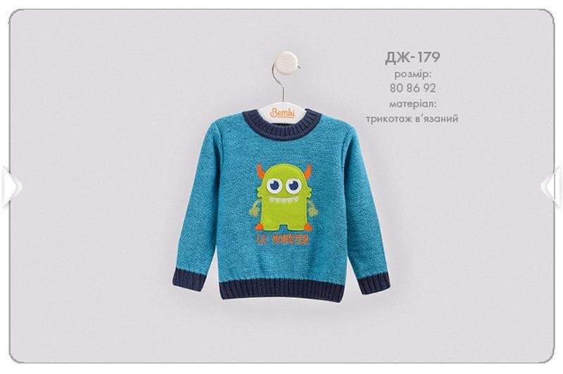 Джемпер в'язаний на хлопчика ДЖ 179 Бембі бірюза: р.80,86,86,92,92 матеріал: в'язаний трикотаж