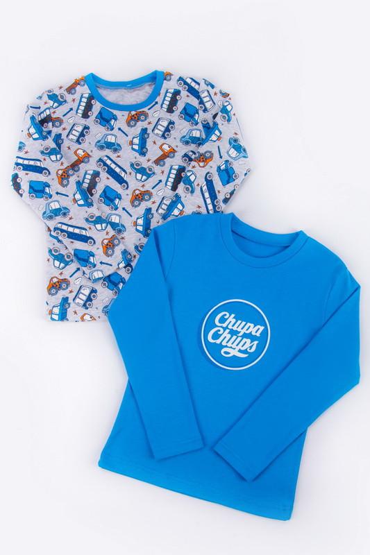 Комплект футболок для мальчиков состоит из двух изделий. Изготовлен из трикотажного полотна - рибана. Состав: 100% хлопок. Футболки стандартной длины. На второй - накат. Размерный ряд 98, 104, 110, 116, 122.
