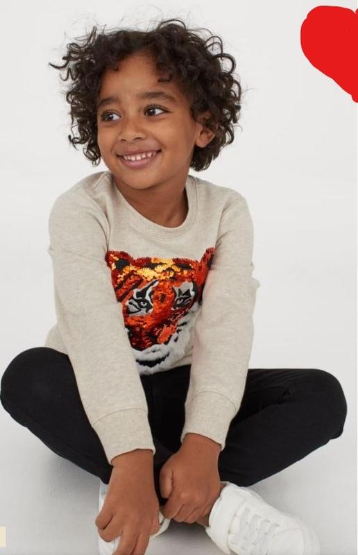 3-4 года 104 см H&M фирменный новый свитшот кофта толстовка батник пайетки блестки тигр Свитшот с длинным рукавом из мягкого футера с набивным рисунком и двухсторонними пайетками спереди (размер 98 - с обычными пайетками). Рельефная трикотажная резинка по горловине, низу рукавов и низу топа. Состав - Хлопок 80 %, Полиэстер 20 % Цвет - Светло-бежевый меланж/Тигр Цена сайта 429 грн , а у нас всего 369 грн ! Замеры рукав - 37 плечи - 28 см рукав с плечиком - 44 грудь п/о - 32 см длинна по спинке - 43 см Пересылаю джастин, укр и новой почтами самовывоз в Киеве Обмен или возврат не предусмотрен