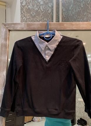 Кофта обманка 140 рост. Реглан и рубашка в одной вещи, очень удобно и практично. Длина 46 Ширина 40 Рукав 45 Состояние отличное