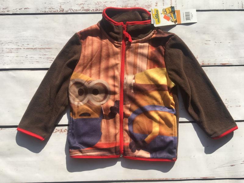 Флісова кофта від Дісней Мінйони Фліс не дуже грубий але тепла Є кишеньки Можна використовувати як піддіву під термо курточку Розмір 3, 4роки