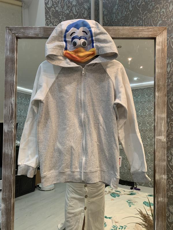 Кофта на 8-10 лет. Серо-Белая с оригинальным капюшоном
